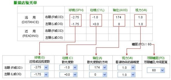 - R(Right)或OD右眼如果左右眼屈光度不同请注意区分